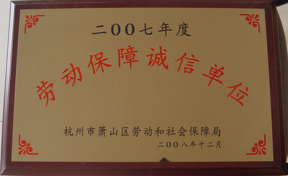 2008年12月,浙江佳力科技股份有限公司被杭州市蕭山區(qū)勞動(dòng)和社會(huì)保障局評(píng)為2007年度勞動(dòng)保障誠信單位。