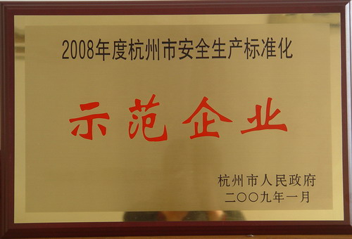 公司于近日獲授“杭州市安全生產(chǎn)標(biāo)準(zhǔn)化示范企業(yè)”銅牌