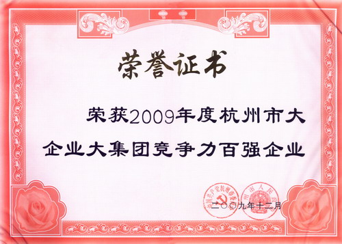 佳力被評為2009年度杭州市大企業大集團競爭力百強企業