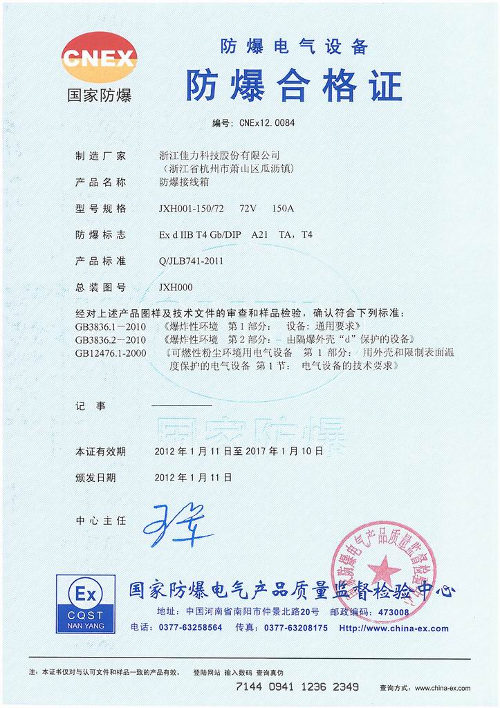 防爆證書>>詳細信息