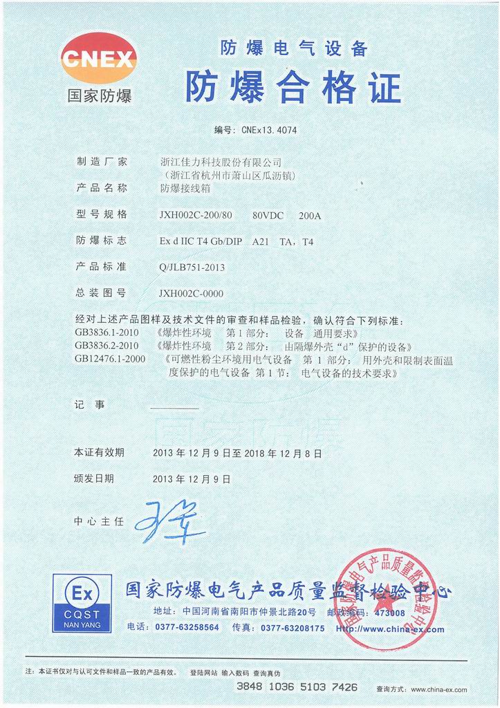 防爆證書>>詳細信息