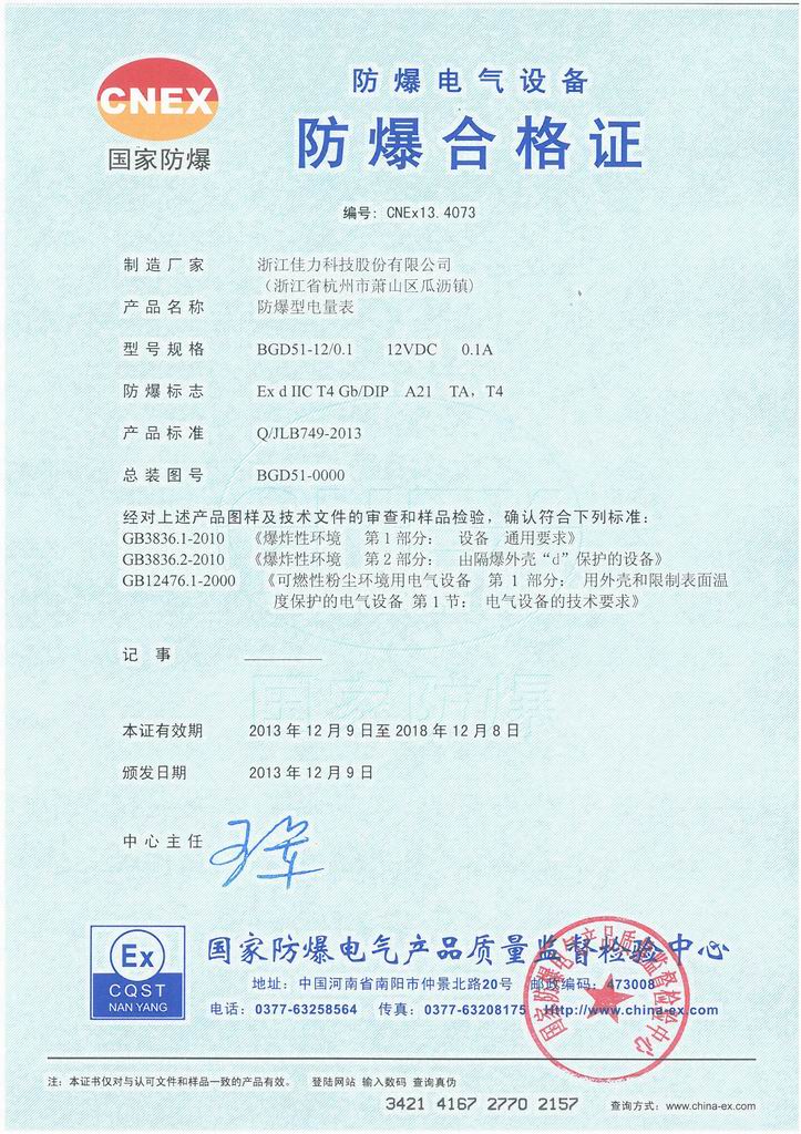 防爆證書>>詳細信息