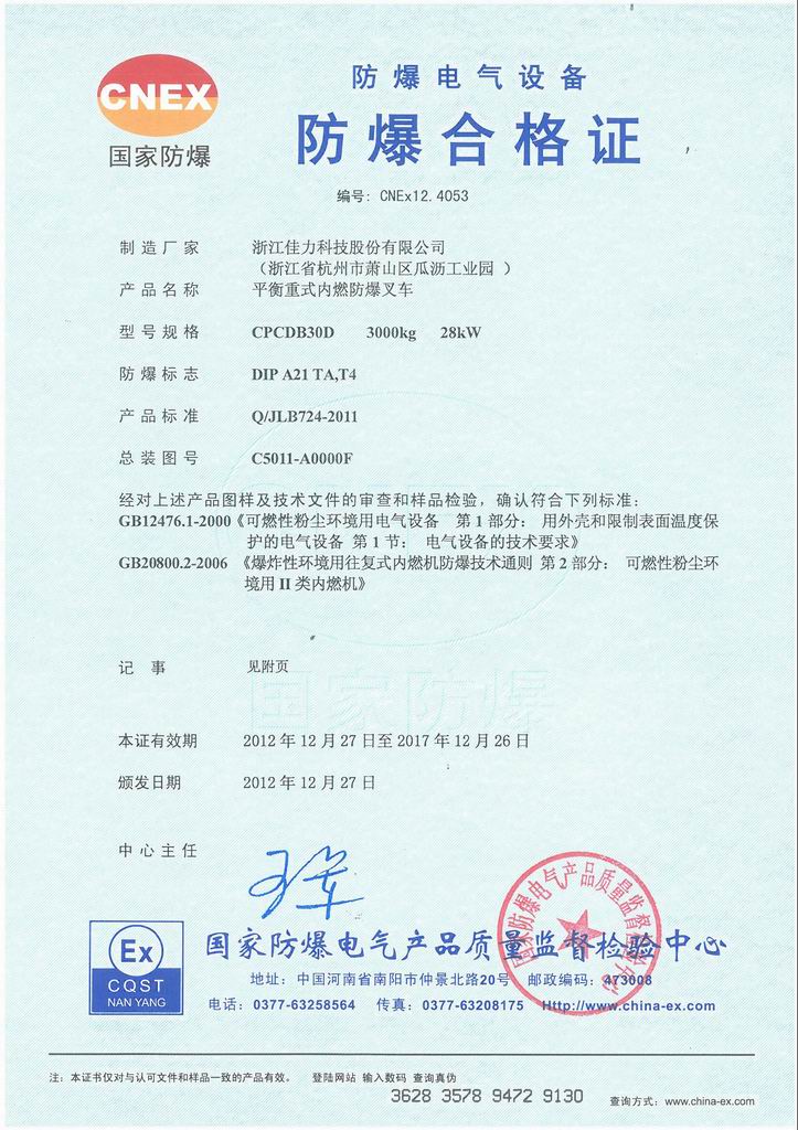 防爆證書>>詳細信息