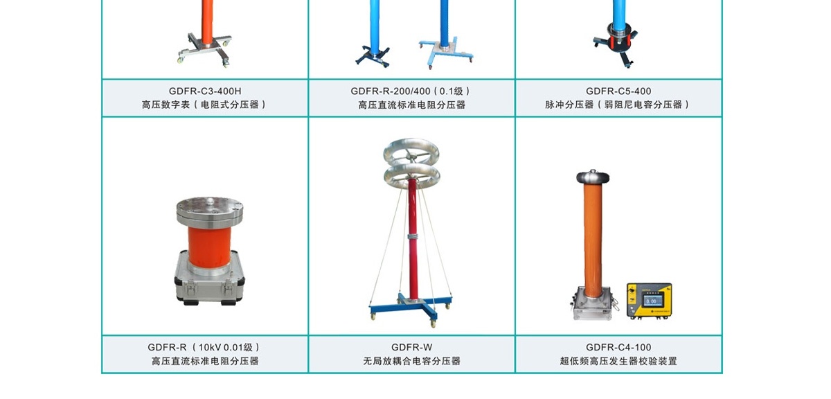 GDFR交直流分壓器,又可被稱為高壓數(shù)字表或阻容分壓器。是我司最新研發(fā)的專利產(chǎn)品。廣泛適用于發(fā)電廠、變電站、高壓電氣設備制造廠以及高電壓實驗室等場所。主要用于脈沖高壓、雷電高壓以及工頻高壓的測量。可根據(jù)客戶不同測量精度要求來選擇不同的精度的分壓器。可定制分壓比比例,性價比更高。