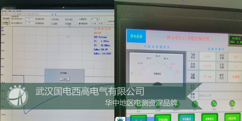 高壓開關沖擊試驗:全壓調波,波頭電阻500并500+500并70,波尾70+70,間隙4K