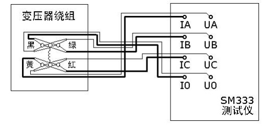 單相測量功能適用于一個繞組的測量,對于低壓繞組的測量可使用此方法,此方法最大電流可達到20A,接線方法如圖所示: