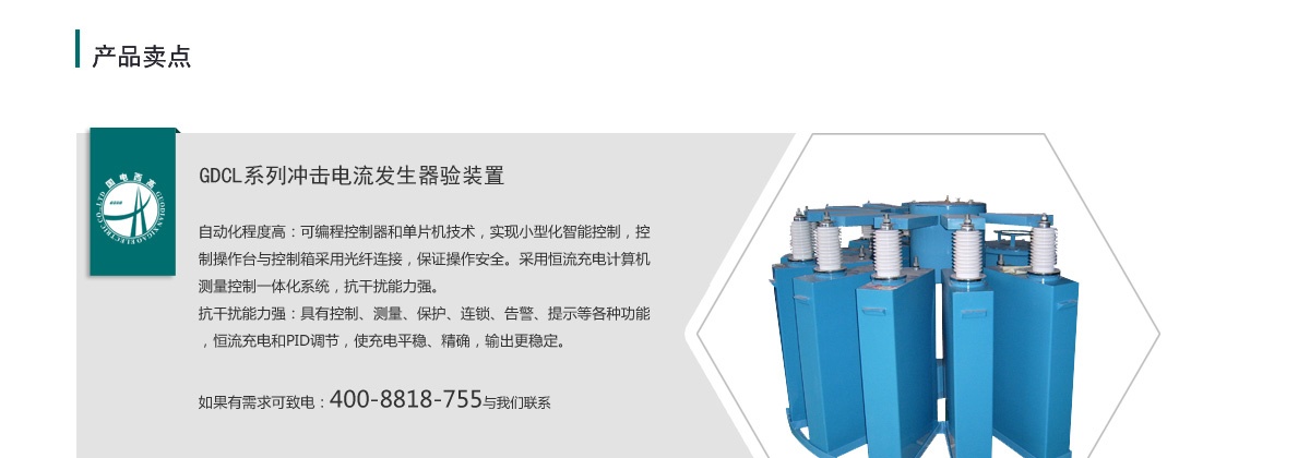 GDCL系列適沖擊電流發生器用于10kV(殘壓100kV)及以下電壓等級的避雷器及閥片進行標準雷電沖擊電流,主要用來考核在過電壓情況下非線性電阻片耐受長時間沖擊電流的能力。