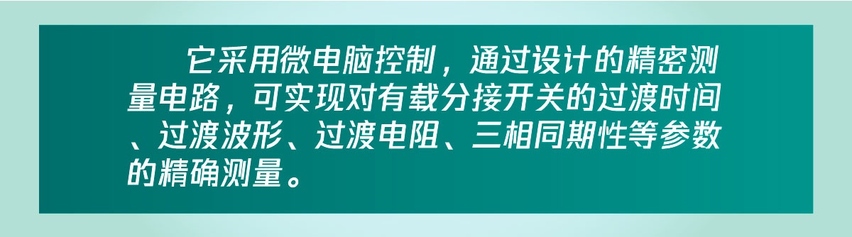 GDKC-2000B 變壓器有載開關測試儀,是用于測量和分析電力系統中電力變壓器及特種變壓器有載分接開關電氣性能指標的綜合測量儀器。它采用微電腦控制,通過設計的精密測量電路,可實現對有載分接開關的過渡時間、過渡波形、過渡電阻、三相同期性等參數的精確測量。用戶可根據需要和現場條件,直接由分接開關引線進行測量,也可由變壓器三相套管及中性點直接接線測量。