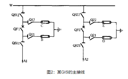 例如,測量圖2所示GIS的主同路電阻時,可以首先測量A1——A2之間的電阻,若三相測量數(shù)據(jù)與出廠數(shù)據(jù)差別較大或三相數(shù)據(jù)差別較大,應對測量回路分段,以找到有安裝缺陷的部件。如從B、C兩點通電測量,可以判斷斷路器QF1的接觸情況;從D、F兩點通電測量回路電阻,可以準確判斷斷路器QF2的接觸情況。