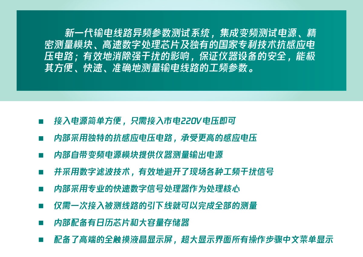 儀器內部采用獨特的抗感應電壓電路,保證儀器能夠承受更高的感應電壓,能夠在上萬伏的高感應電壓下正常工作。