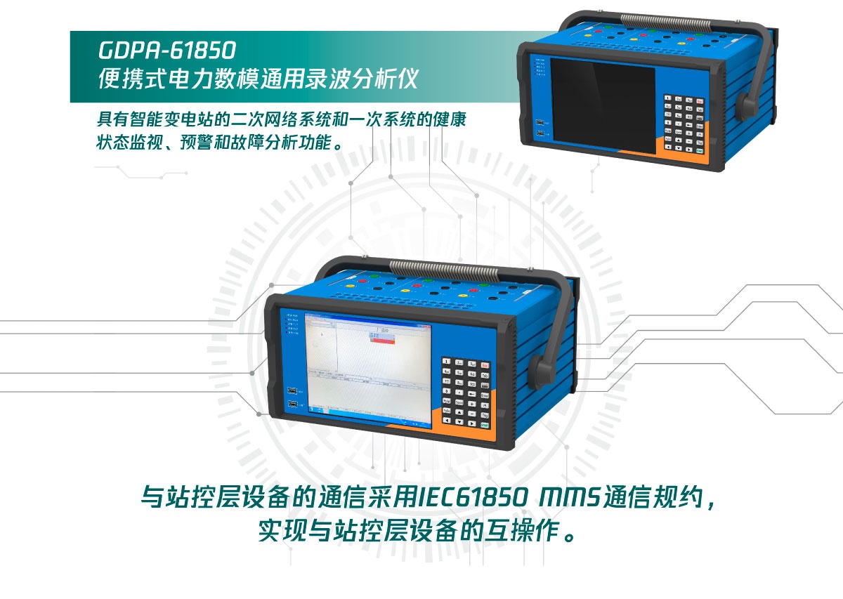 GDPA-61850便攜式電力數模通用錄波分析儀與站控層設備的通信采用IEC61850 MMS通信規約,實現與站控層設備的互操作。