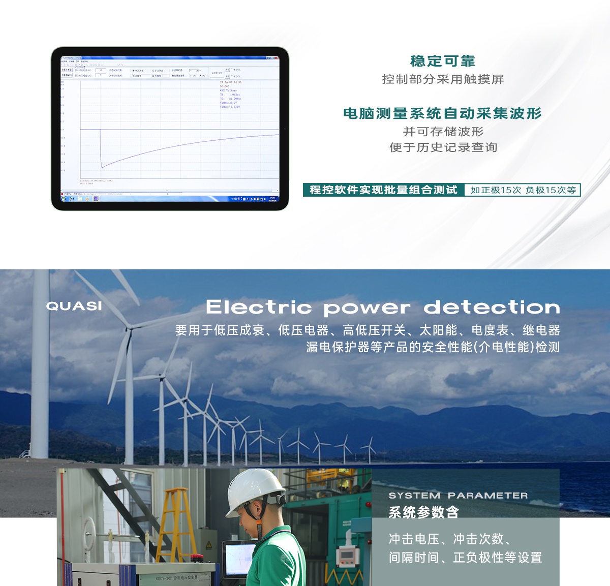 GDCY-30P型程控自動沖擊電壓試驗儀主要是根據(jù)TB/T 2653、GB/T17627、GB/T16927等標準要求,主要用于低壓成套、低壓電器、高低壓開關(guān)、太陽能、電度表、繼電器、漏電保護器等產(chǎn)品的安全性能(介電性能)檢測。