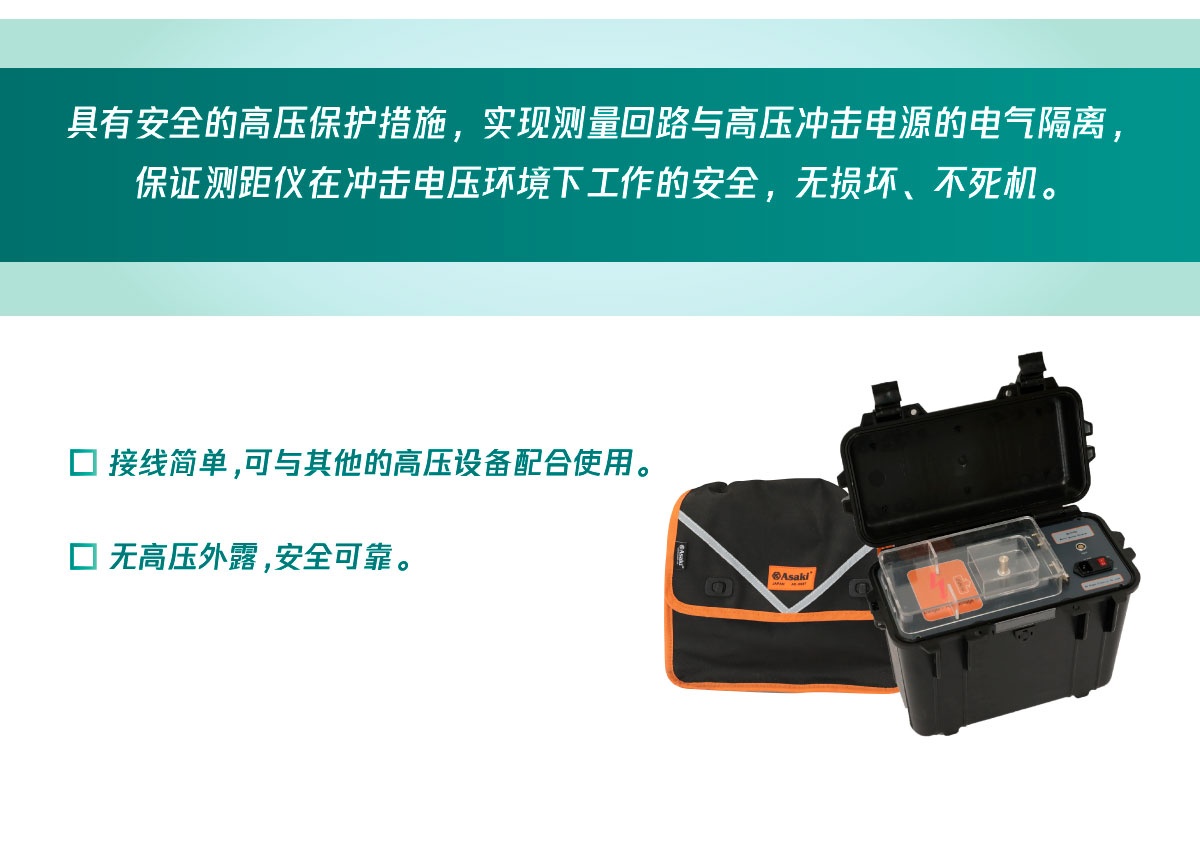 · 具有安全的高壓保護措施,實現(xiàn)測量回路與高壓沖擊電源的電氣隔離,保證測距儀在沖擊電壓環(huán)境下工作的安全,無損壞、不死機;