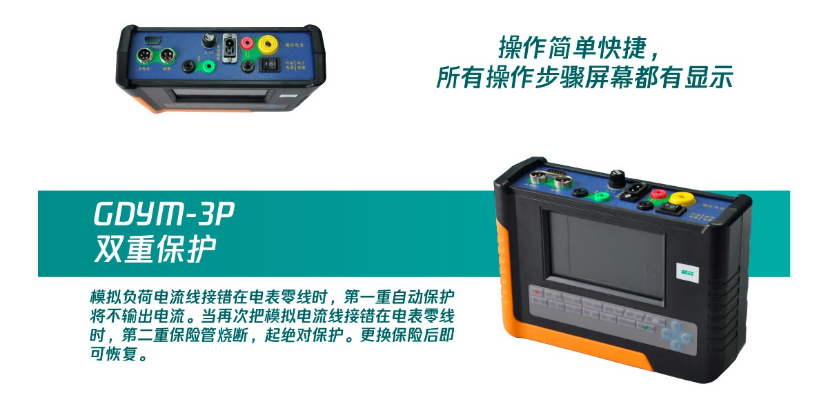 · 模擬負(fù)荷電流線接錯在電表零線時(shí),重自動保護(hù)將不輸出電流。當(dāng)再次把模擬電流線接錯在電表零線時(shí),第二重保險(xiǎn)管燒斷,起保護(hù)。更換保險(xiǎn)后即可恢復(fù);