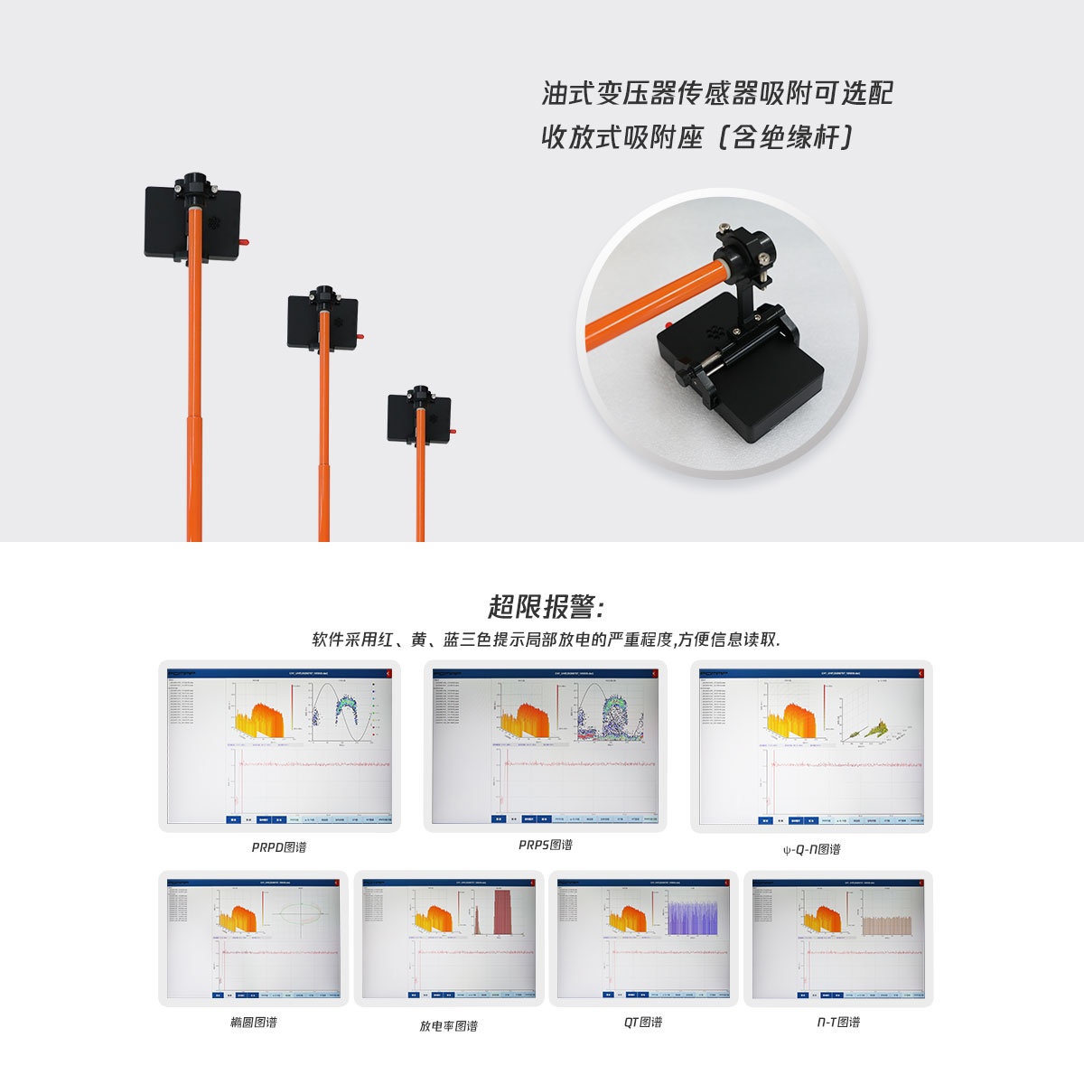 8)實時數據存儲:測試過程中可實時記錄各信號通道的PRPS和PRPD圖譜、橢圓圖、放電率圖譜、QT圖、N-T圖、PRPD累計圖ψ-Q-N圖,能顯示各信號通道局放信號的幅值和脈沖個數。