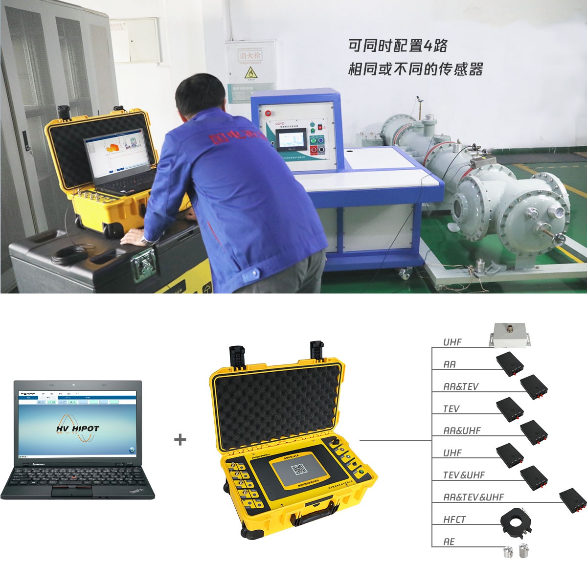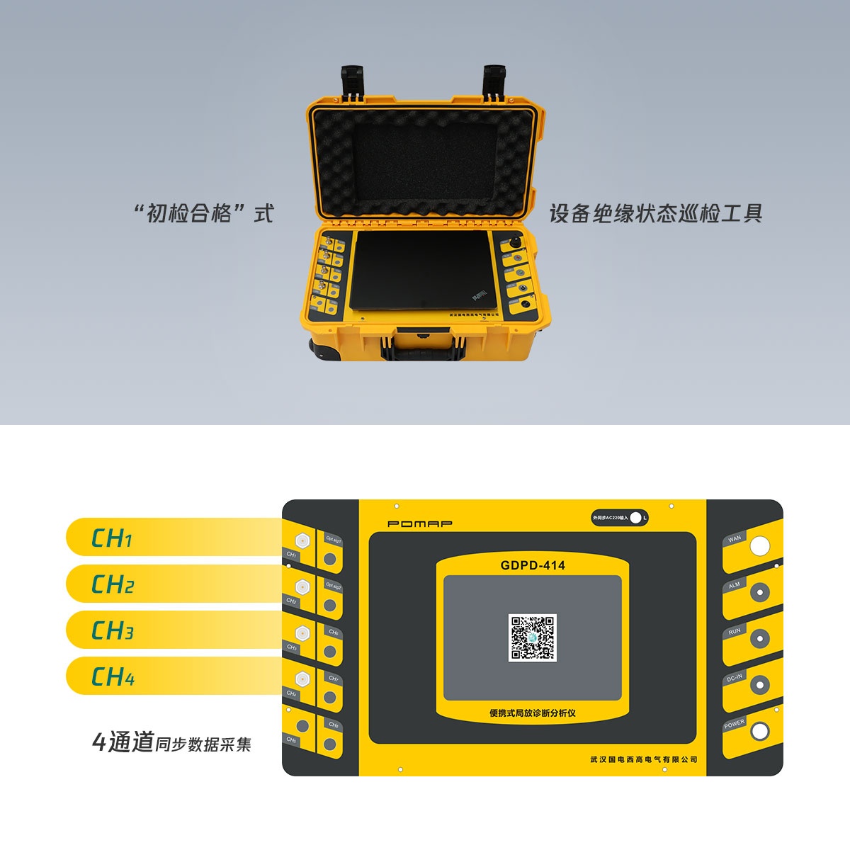 電西高自主研發的GDPD-414局部放電檢測儀采用速慧(smart quick)智能化電力測試系統(軟著登字第1010215號、商標注冊號14684781),HVHIPOT公司引進國際先進的局放檢測技術研發生產的便攜式高效的“初檢合格”式設備絕緣狀態巡檢工具。